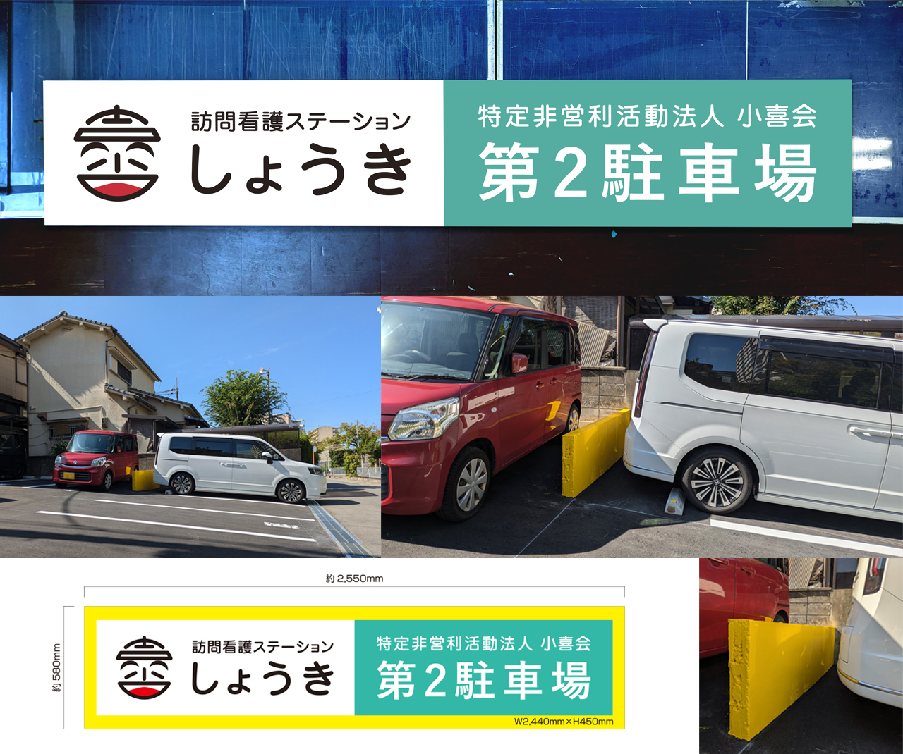 ※こちらはいつもお世話になっている貝塚市の「訪問看護ステーション しょうき」さんからで、今回は駐車場看板のプレートのみの依頼でした。現調にて寸法を測ってからのサイズを合わせて製作しました。