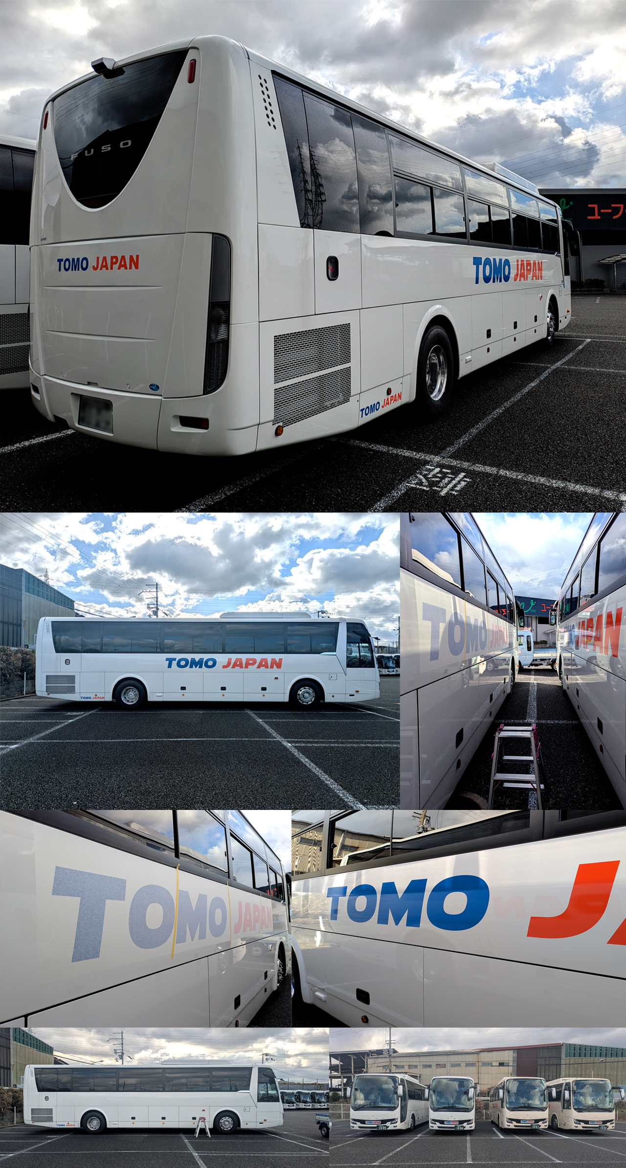 ※こちらは阪南市にあるインバウンド専門のバス会社「トモジャパン株式会社」さんからで、去年の年末にどうしてもバスにシートを貼ってほしいということで、新しいバスに8カ所ずつのシートを貼ってきました。